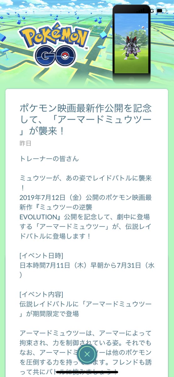 アーマードミュウツーの伝説レイドバトルが7月11日より実装!