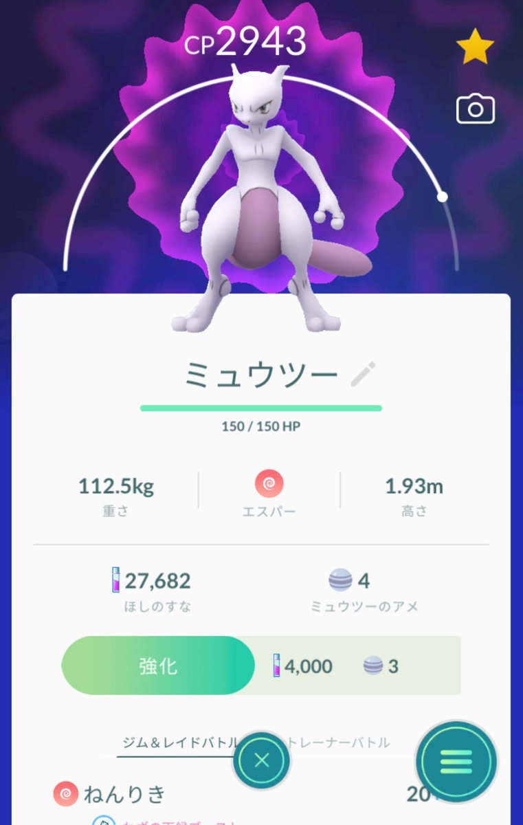 昨日のミュウツーの個体値見てたんやけど、1番CP低い子が攻撃Fとか